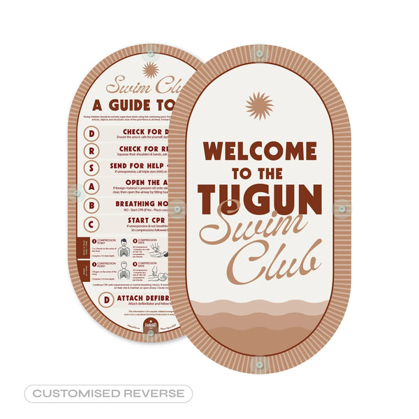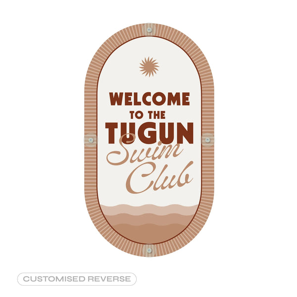 Customise your pool sign! Simply tell us what word you’d like written on your specially made pool sign: “Welcome to the [ ______] Swim Club”. Personalise it with your suburb, surname or house name! (Some limitations will apply).