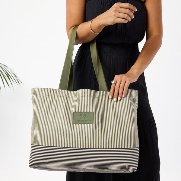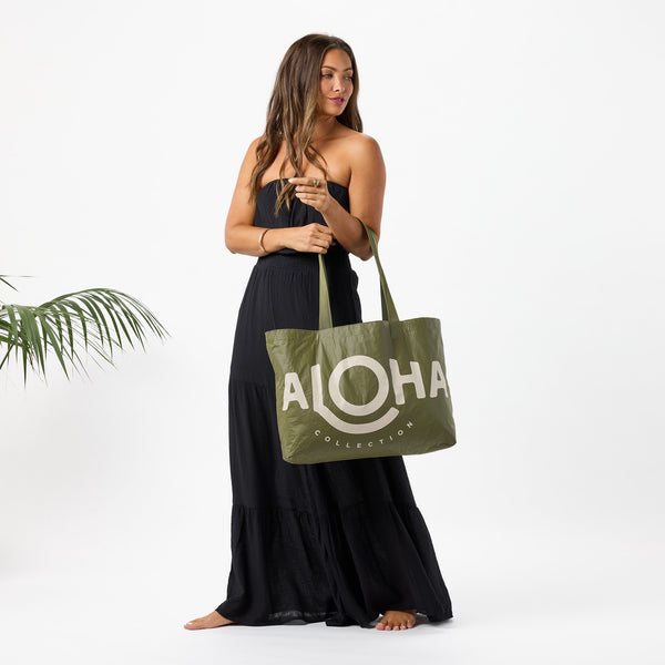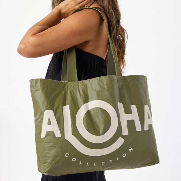 Looking for a bag you can put your entire life into? We've got you covered with our Holo Holo. This tote is not only functional but also reversible. It's like having two bags in one! Our largest silhouette features an open-top design, two thick straps for comfort, and an inner zipper pocket to keep smaller items organized. Perfect for hauling oversized items like towels and beach toys across the sand or your cabana essentials to the pool. Grab your stuff and Holo Holo!